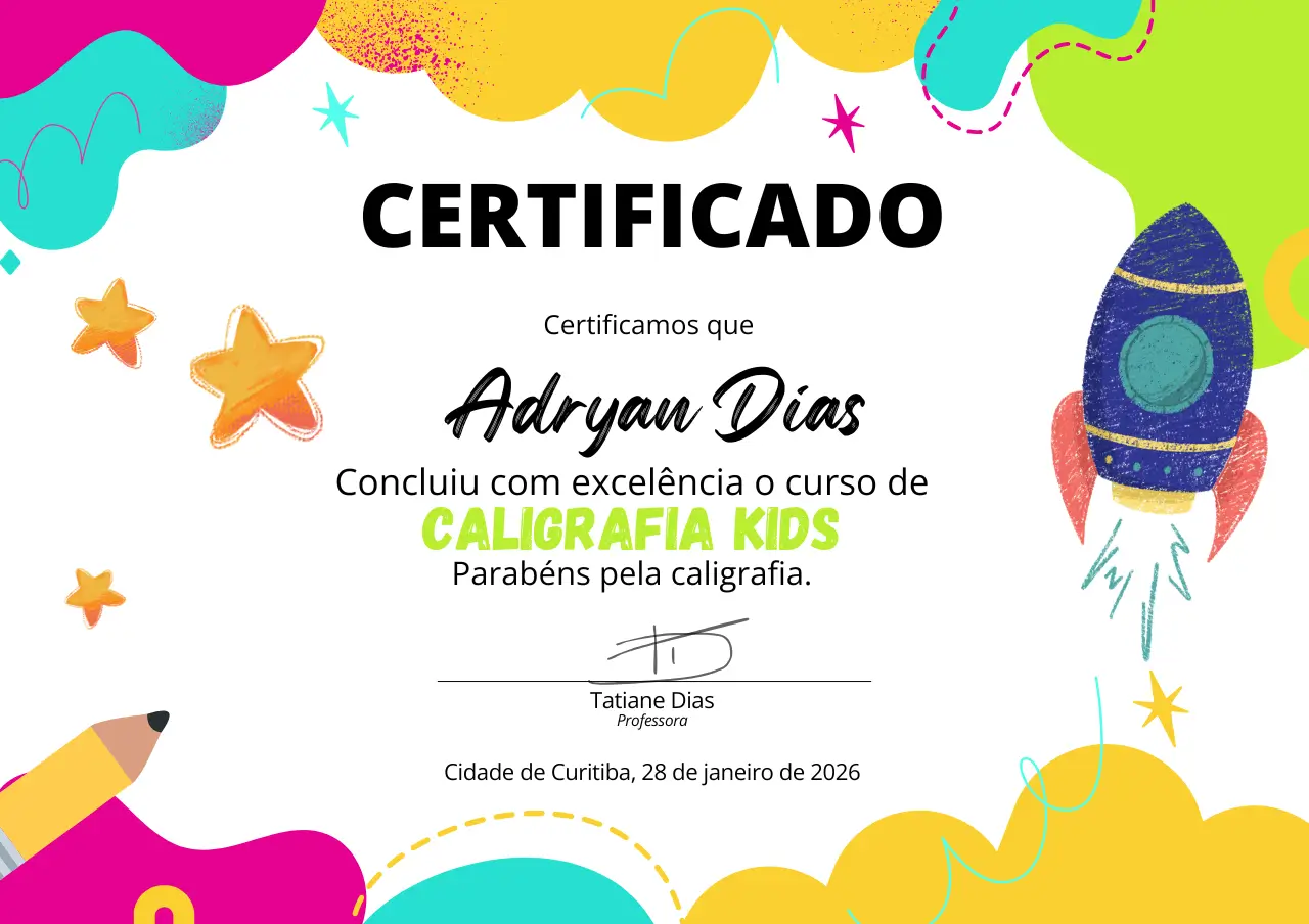 Tatiane Dias é professora e criadora do Kit Caligrafia Kids, um material desenvolvido para ajudar crianças a aprenderem e desenvolverem a escrita de forma simples e eficiente.